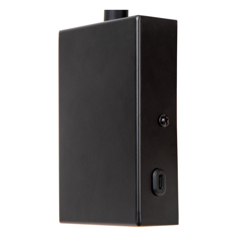 Kinkiet ścienny snake z giętkim wysięgnikiem oraz gniazdami ładującymi USB i USB-C Alec czarny LED 3 StepDim G9 3W 2700K