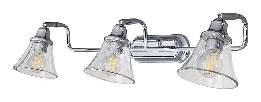 Utrzymany w klasycznym stylu kinkiet łazienkowy Antoine z 3 żarówkami jest polecany osobom, które szukają eleganckiego dodatku do wyposażenia łazienki. Model ten można umieścić w pobliżu umywalki lub wanny, gdzie zapewni nastrojowe oświetlenie podczas wieczornych rytuałów przed snem. Do żelaznej oprawy w kolorze chromu pasują przezroczyste szklane klosze w kształcie dzwonów. Lampa Antoine może być przymocowana do ściany za pomocą podłużnej, zaokrąglonej podstawy dekoracyjnej i potrzebuje trzech żarówek o mocy do 40 W każda. Typ oprawki to E14. Ochrona IP44 gwarantuje, że lampa jest zabezpieczona przed wnikaniem do środka zanieczyszczeń o średnicy do 1 mm oraz przed rozpryskami wody z dowolnego kierunku. Wymiary lampy ściennej z 3 żarówkami są następujące: szerokość 650 mm, wysokość 140 mm, odległość od ściany 180 mm. Prezentowany model jest sprzedawany bez żarówki.