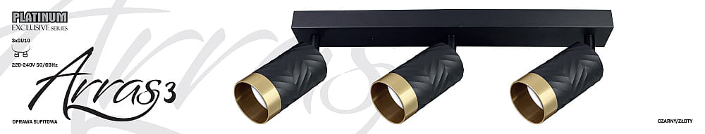 Spot potrójny Arras 3 czarny | złoty 3xGU10