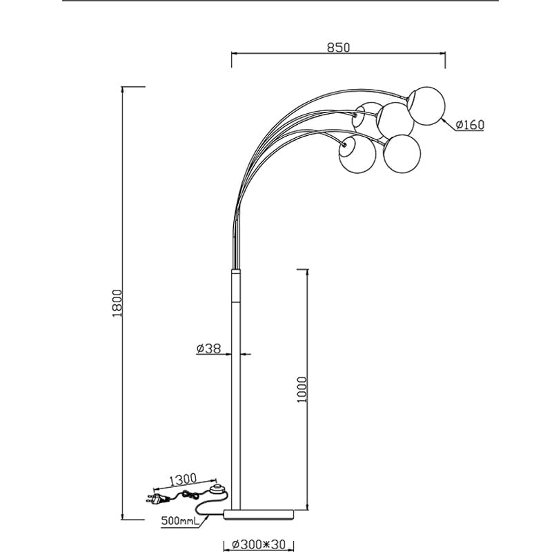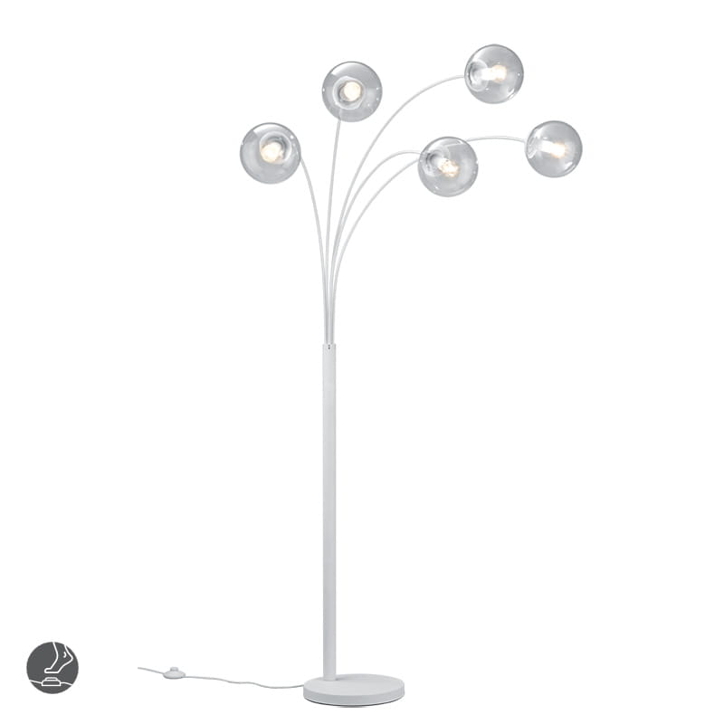 Lampa podłogowa BALINI Biały mat/Przezroczysty 5xE14 z włącznikiem nożnym