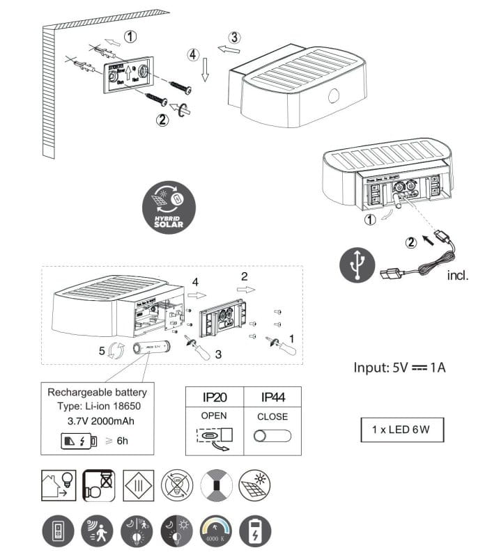 | Wykonanie: | Ładowanie akumulatora: Energia słoneczna oraz przez złącze USB-C |