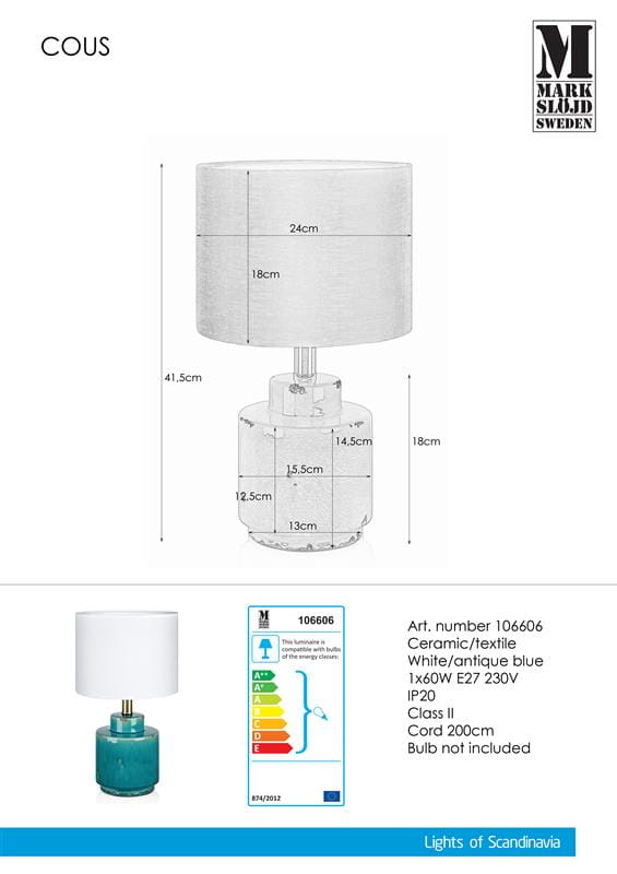 COUS antyczny niebieski | biały Ø 24cm E27 Lampka stołowa Markslojd 106606