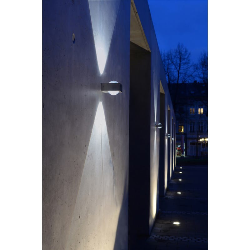 Kwadratowy dwukierunkowy kinkiet zewnętrzny CRYSTAL świecący go góry oraz do dołu posiada światło o subtelnym świetle pośrednim. Całkowicie otwarty profil ze stali nierdzewnej z 2 przednimi liniami świetlnymi przedstawi się jako ładny i delikatny detal.