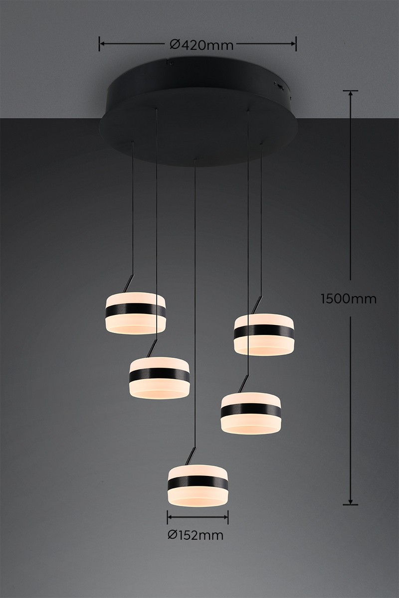 DIOS - Nowoczesna lampa wisząca 5xLED zintegrowany 2300+3000+4000K - kolor czarny