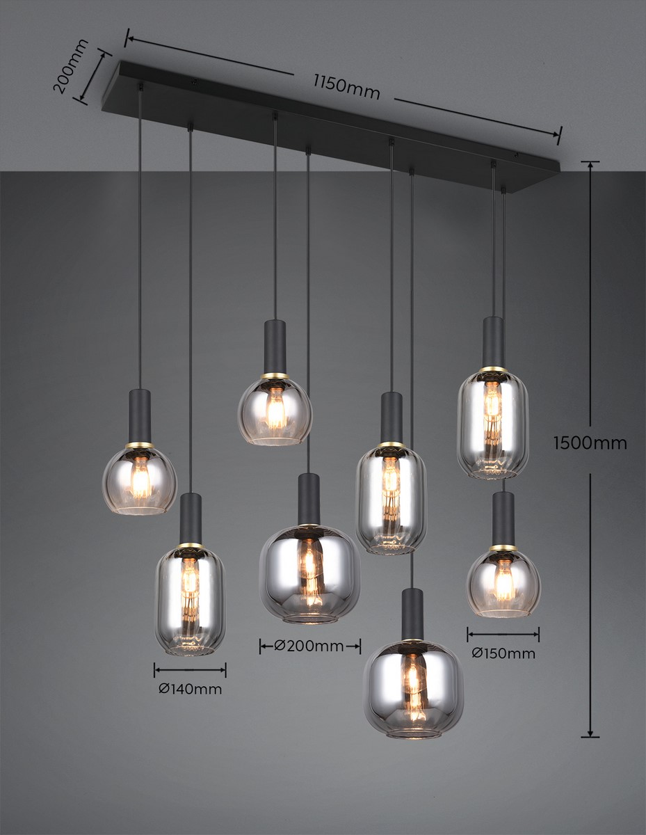 DIVA - Wisząca lampa nowoczesna 8xE27 - kolor czarny