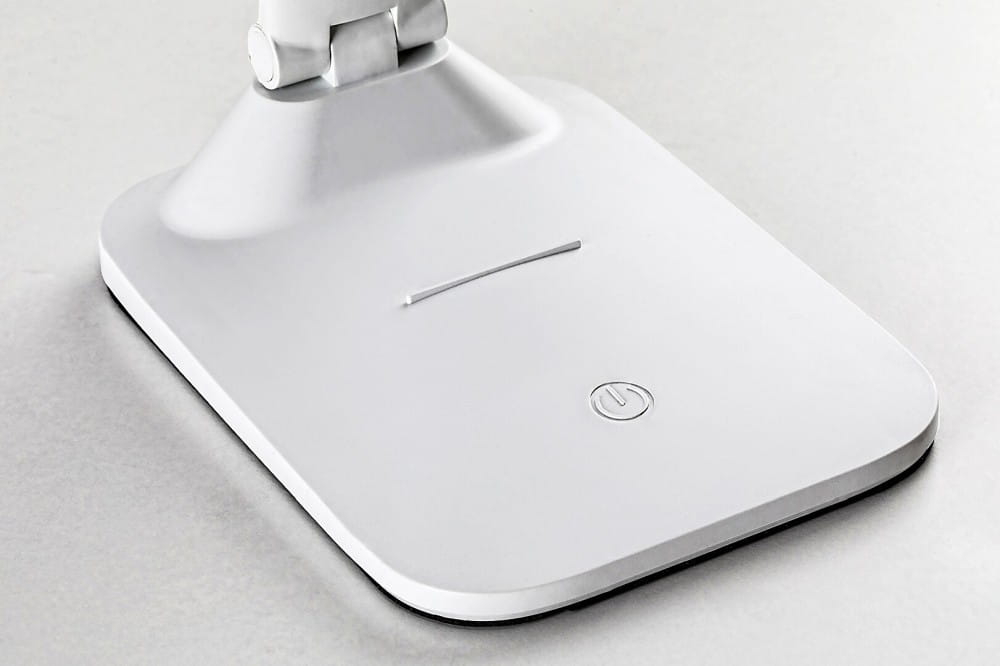 Nowoczesna lampa stołowa Deshal dzięki atrakcyjnemu wyglądowi i wszechstronności stanie się niezastąpionym elementem wystroju w gabinecie lub na dowolnym biurku. Wykonana w całości z tworzywa sztucznego biała lampa smart posiada dużą, kwadratową podstawę dekoracyjną i regulowaną głowicę. Lampa Deshal posiada wyświetlacz LCD pokazujący temperaturę, godzinę i datę. Lampa działa z zintegrowanym źródłem światła LED o mocy 5 W, posiada możliwość trzystopniowej regulacji temperatury barwowej (3000-6000K) oraz płynną regulację natężenia światła. Strumień świetlny lampy biurkowej wynosi 300 lumenów, a strumień świetlny źródła światła 400 lumenów. Jeżeli lampa jest używana do pracy lub nauki, warto zastosować źródło światła o zimnobiałej barwie, które pomoże utrzymać koncentrację. Lampa Deshal dzięki wbudowanej baterii o pojemności 2600 mAh może być używana również bezprzewodowo. Ładowanie lampy jest możliwe przez kabel USB, ponadto posiada ona bezprzewodową ładowarkę. Wymiary lampy biurkowej są następujące: szerokość 255 mm, wysokość 410 mm, długość przewodu 1200 mm.