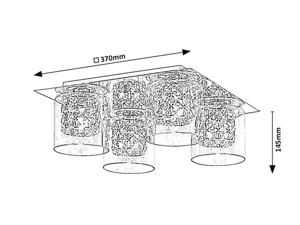 Nowoczesna i elegancka lampa sufitowa Duchess z 4 żarówkami będzie efektownym dodatkiem do wyposażenia salonu, jadalni lub sypialni. Do metalowej oprawy w kolorze chromu dołączone są przezroczyste klosze z cylindrycznego szkła, które pozwalają dostrzec piękne kryształowe ozdoby wewnątrz główek lamp. Model można przymocować do sufitu za pomocą dużej, kwadratowej podstawy dekoracyjnej. Do lampy Duchess potrzebne są cztery żarówki o mocy do 40 W każda. Typ oprawki to G9. W zależności od upodobań można wybrać żarówkę o barwie ciepłej lub naturalnej bieli. W przypadku umieszczenia lampy w sypialni zalecamy stosowanie żarówek emitujących ciepło-białe światło, które z pewnością pomoże stworzyć przytulną, intymną atmosferę. Wymiary lampy sufitowej Duchess to 370x370 mm, odległość od sufitu wynosi 145 mm. Prezentowany model jest sprzedawany bez żarówek.