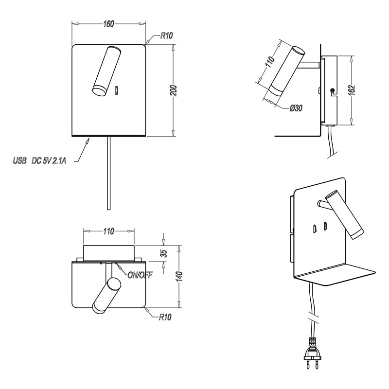 | Wykonanie: | Włącznik umieszczony na lampie |