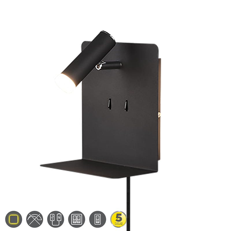 Kinkiet ścienny ELEMENT Czarny Mat LED 3W 3000K USB z funkcją ładowania