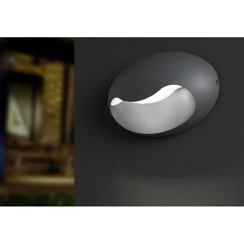 Przyciągający wzrok antracytowy kinkiet zewnętrzny o mocy 19W i strumieniu świetlnym 780 lm, świecący w barwie neutralnej 4000K. Światło rozchodzi się w tym kinkiecie pośrednią wiązką. Kinkiet charakteryzuje się brakiem widocznych wkrętów na gładkiej powierzchni połączonej z żebrowaną aluminiową wentylującą podstawą.