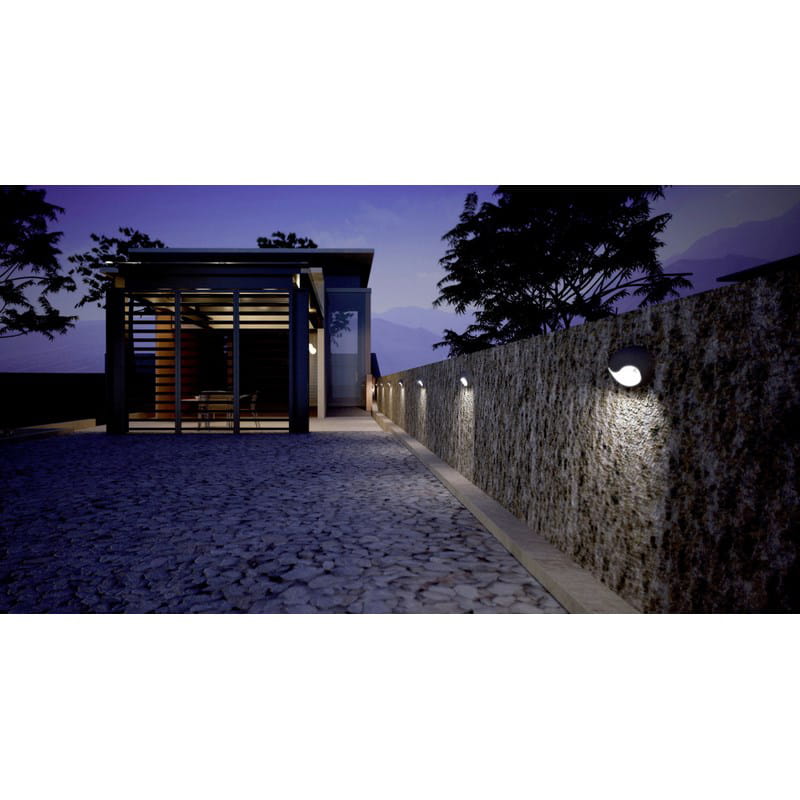 Przyciągający wzrok antracytowy kinkiet zewnętrzny o mocy 9W i strumieniu świetlnym 370 lm, świecący w barwie neutralnej 4000K. Światło rozchodzi się w tym kinkiecie pośrednią wiązką. Kinkiet charakteryzuje się brakiem widocznych wkrętów na gładkiej powierzchni połączonej z żebrowaną aluminiową wentylującą podstawą.