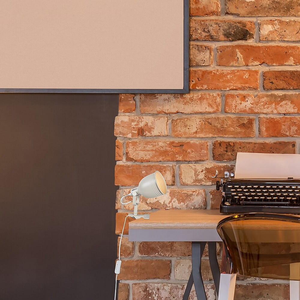 Reprezentująca styl industrialny lampa z klipsem Flint stanowi praktyczny wybór do sypialni lub gabinetu. Wykonana w całości z metalu lampa w kolorze beżowym ma elastyczną głowicę i abażur w kształcie dzwonu. Przenośny model można zamocować za pomocą solidnego klipsa w zależności od potrzeb - na półce lub stole. Lampa Flint może być używana z jedną żarówką o mocy do 25W. Typ oprawki to E14. Do pracy lub czytania zalecamy żarówkę emitującą naturalne białe światło. Wymiary lampy, którą można uruchamiać za pomocą przewodu zasilającego, są następujące: szerokość 180 mm, wysokość 225 mm, średnica abażuru 110 mm. Prezentowany model jest sprzedawany bez żarówki.