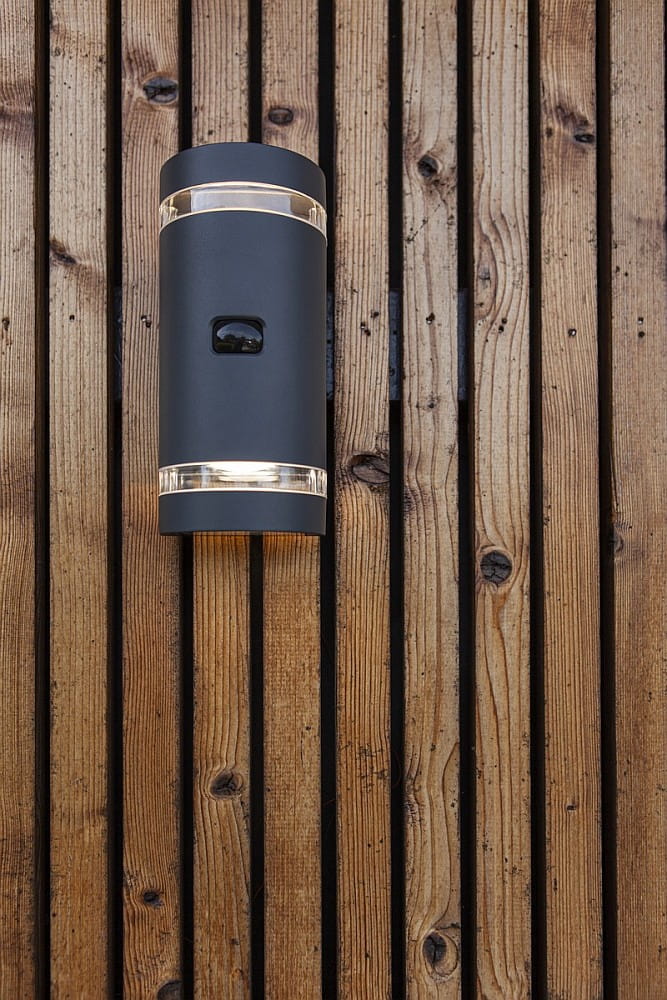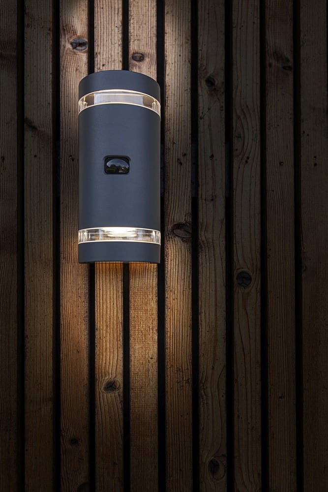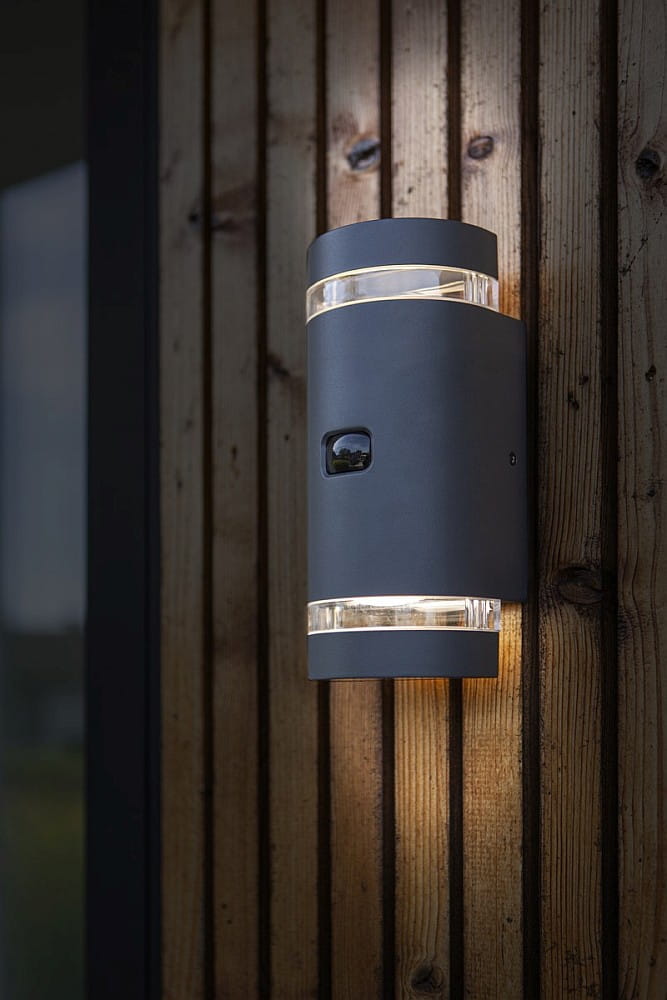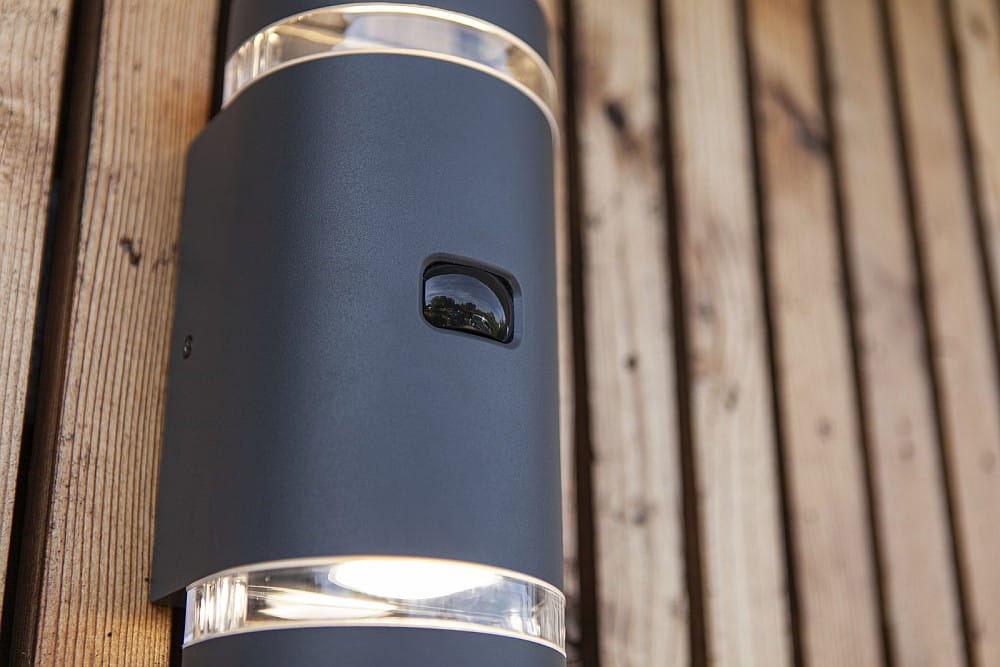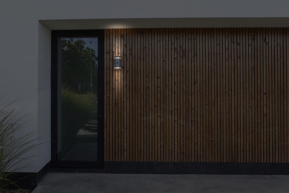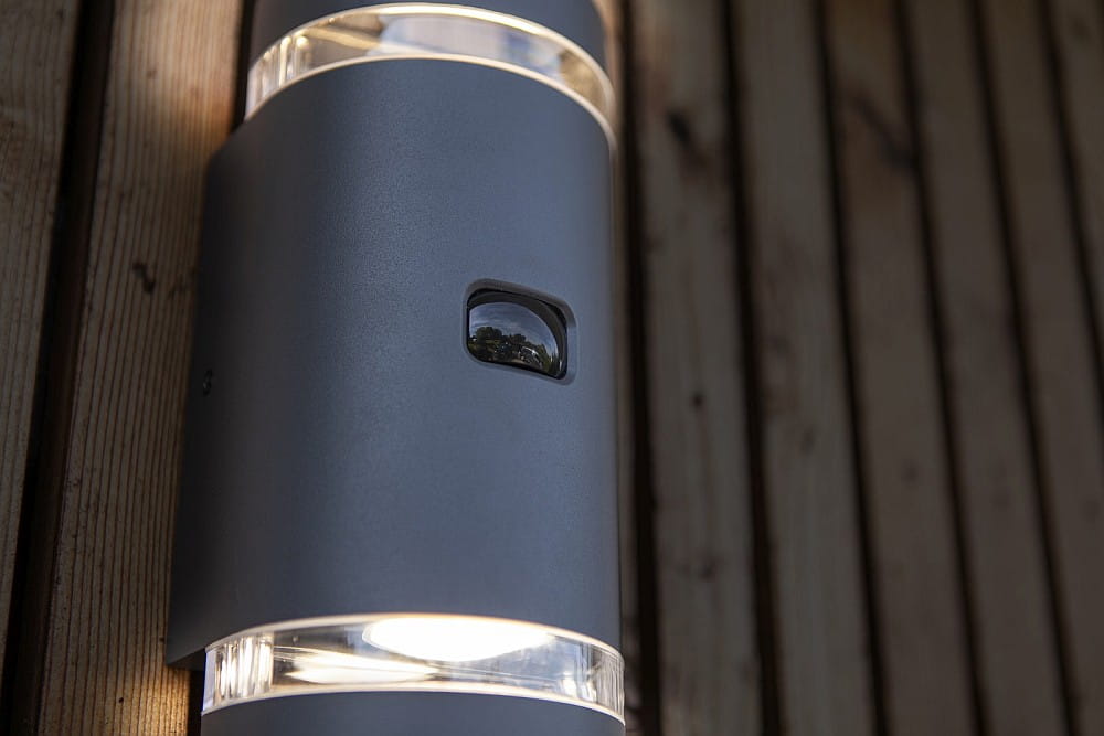 Modny projekt FOCUS. Zewnętrzna lampa ścienna LED Up & Down, teraz dostępny również z czujnikiem ruchu i zmierzchu. Czarny i kompaktowy czujnik PIR jest doskonale zintegrowany z antracytową obudową. Ręczna regulacja czasu i zmierzchu.