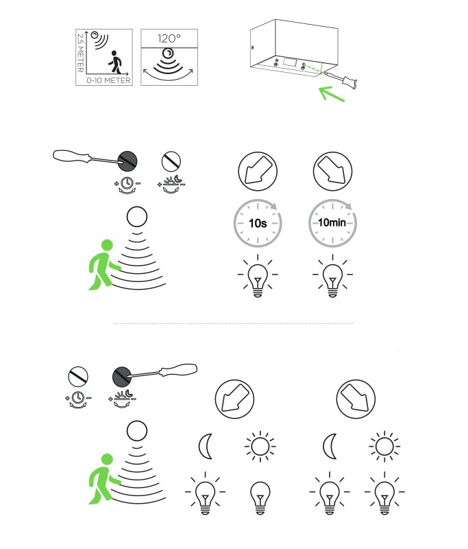 | Wykonanie: | Czas świecenia po wykryciu ruchu: od 10 sekund do 10 minut |