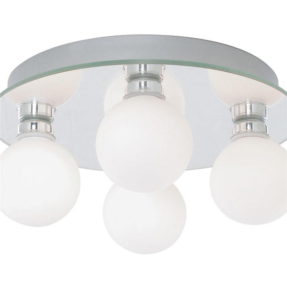 Ta oprawa oświetleniowa o stopniu szczelności IP44 Global chrome 4 z kloszami ze szkła opalowego jest nowoczesna i efektowna. Lustrzana płyta tylna ma eleganckie chromowane wykończenie i cztery mleczne szklane klosze, które zapewniają miękkie, ale praktyczne źródło światła w całym pomieszczeniu. Oprawa jest w pełni bryzgoszczelna, więc idealnie nadaje się jako źródło światła w łazience.