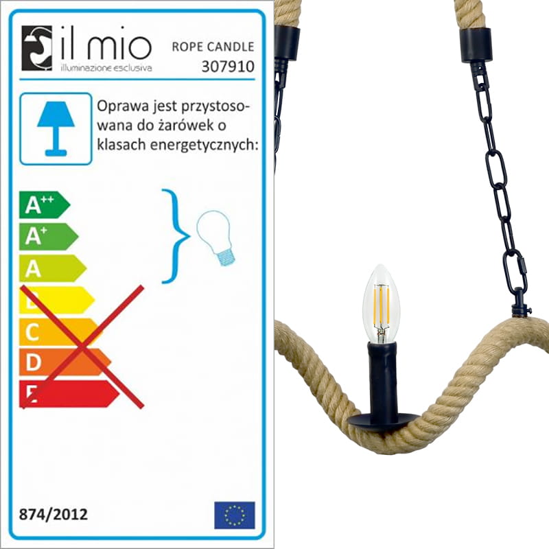 Klasa energetyczna produktu: Oprawa jest przystosowana do żarówek o klasach energetycznych: A++, A+, A
