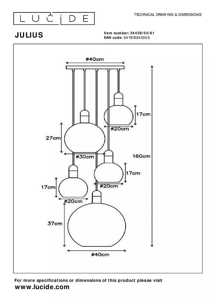 JULIUS Opal śr. 65cm. 5xE27 Lampa wisząca