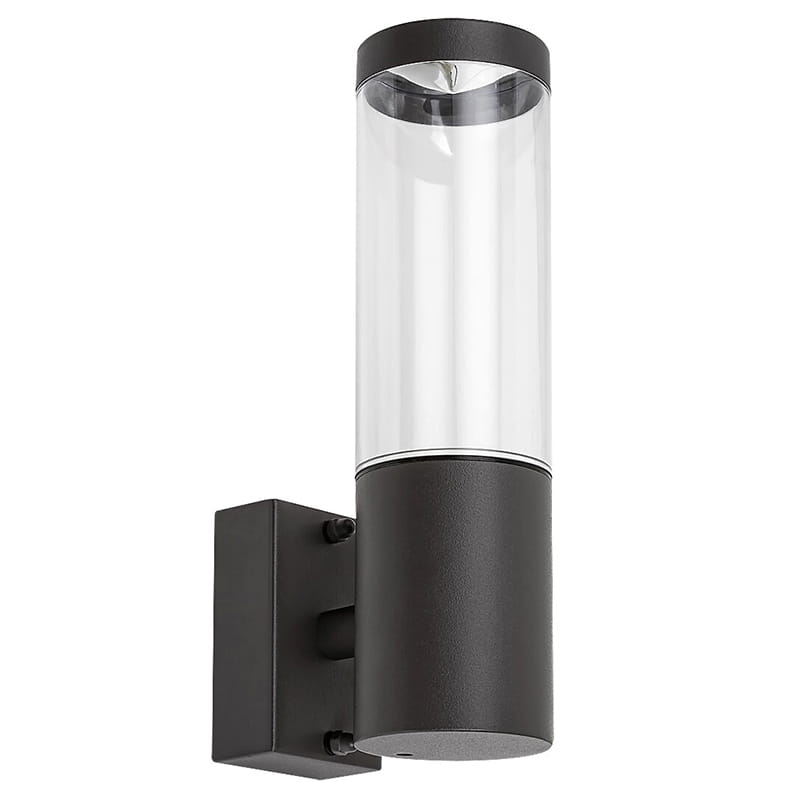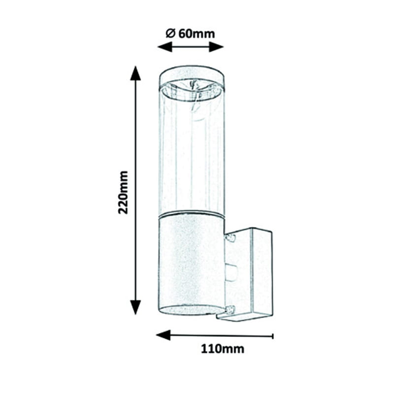 Dzięki prostemu wzornictwu, zewnętrzna lampa Katowice, będzie doskonałym dodatkiem do każdego nowoczesnego otoczenia. Oprawę ze stali nierdzewnej w kolorze antracytu uzupełnia przezroczysty klosz z tworzywa sztucznego, tą cylindryczną lampę można przymocować do ściany za pomocą kwadratowej ozdobnej podstawy. Model ten idealnie sprawdza się przy drzwiach wejściowych lub na zewnętrznej ścianie domu, aby ułatwić poruszanie się po chodniku obok domu. W lampie Katowice można zastosować żarówkę o mocy do 7W, typ gwintu GU10. Lampa posiada stopień ochrony IP44, który zapewnia zabezpieczenie przed przedostawaniem się obiektów o maksymalnej średnicy 1mm oraz przed rozpryskami wody z dowolnego kierunku. Wymiary lampy to: szerokość 60mm, wysokość 220mm, odległość od ściany 110mm.