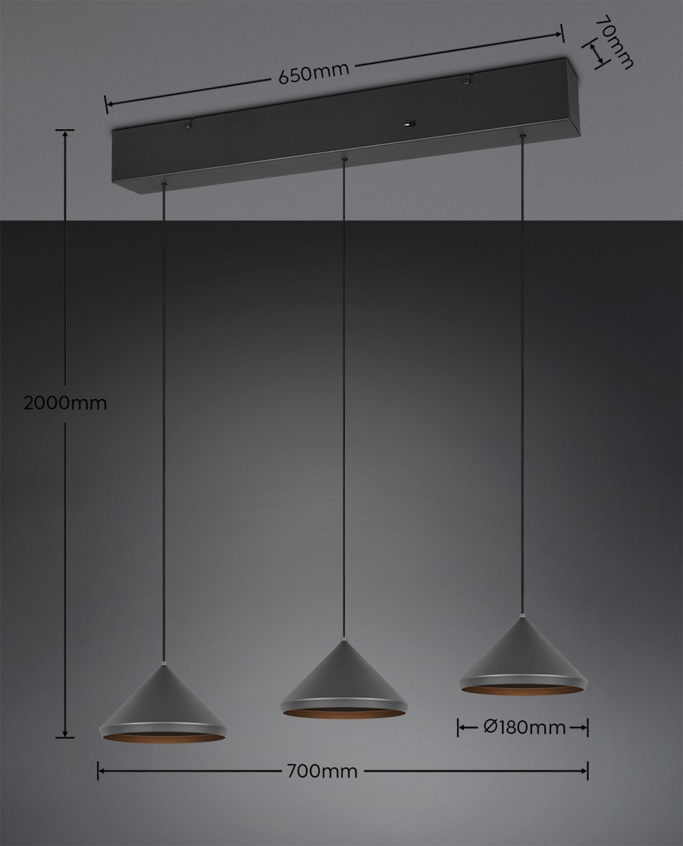 LAGUNA - Nowoczesna lampa wisząca 3xLED zintegrowany 2300+3000+4000K - kolor czarny