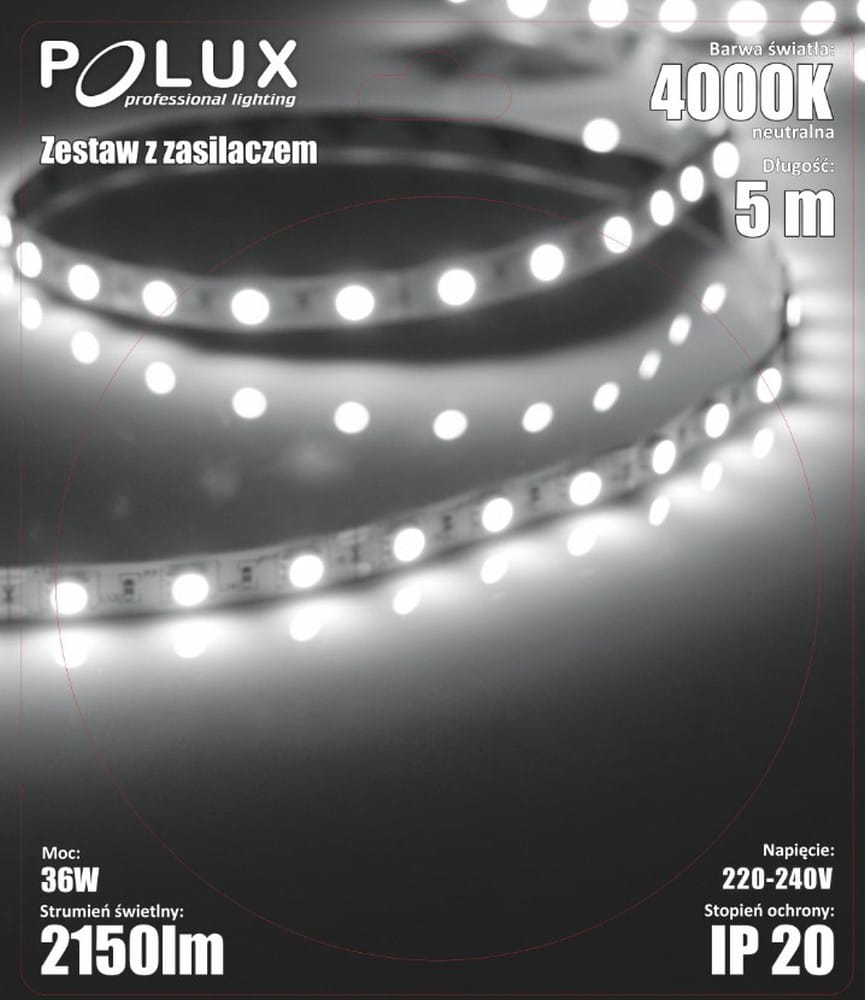 LED 5m. 12V 36W 4000K IP20 + zasilacz Zestaw taśma
