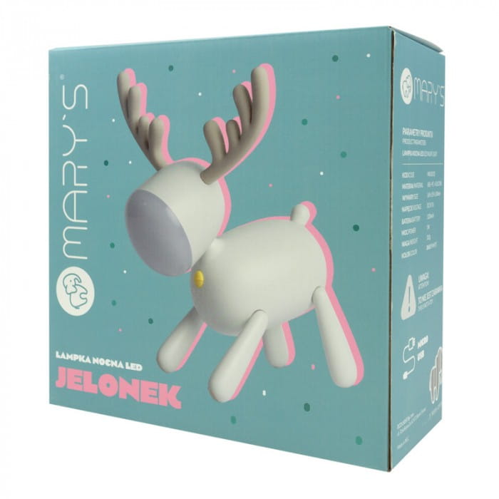 Mary's Lampka Nocna LED Jelonek jest doskonałym wyborem dla osób poszukujących funkcjonalnej i estetycznej lampki nocnej, która dzięki możliwości regulacji barwy światła oraz długiemu czasowi pracy zapewni odpowiednie oświetlenie w każdym pomieszczeniu.