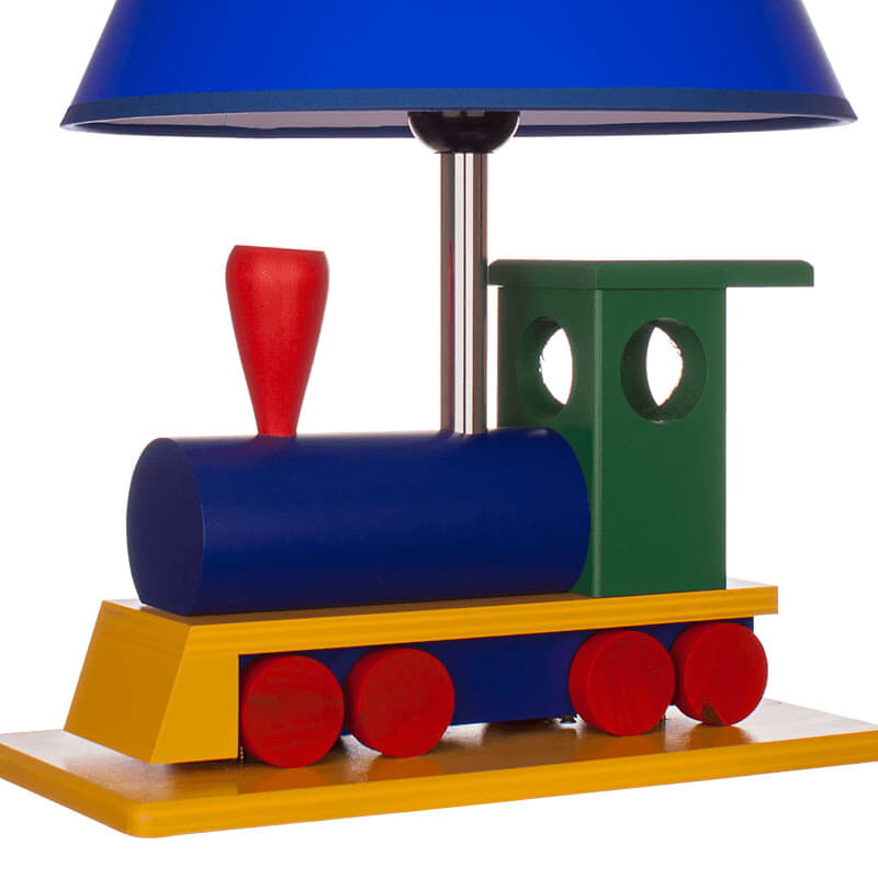Lampa stołowa Lokomotywa została wykonana z drewna w kolorze multikolor, całość uroku lampki dopełnia jasny abażur. Lampka idealnie wpasuje się na biurku lub szafkę nocną. Nada odpowiednie światło przy nauce jak i zabawie. Atrakcyjna forma i kolorystyka rozwinie wyobraźnie Twojej pociechy!!