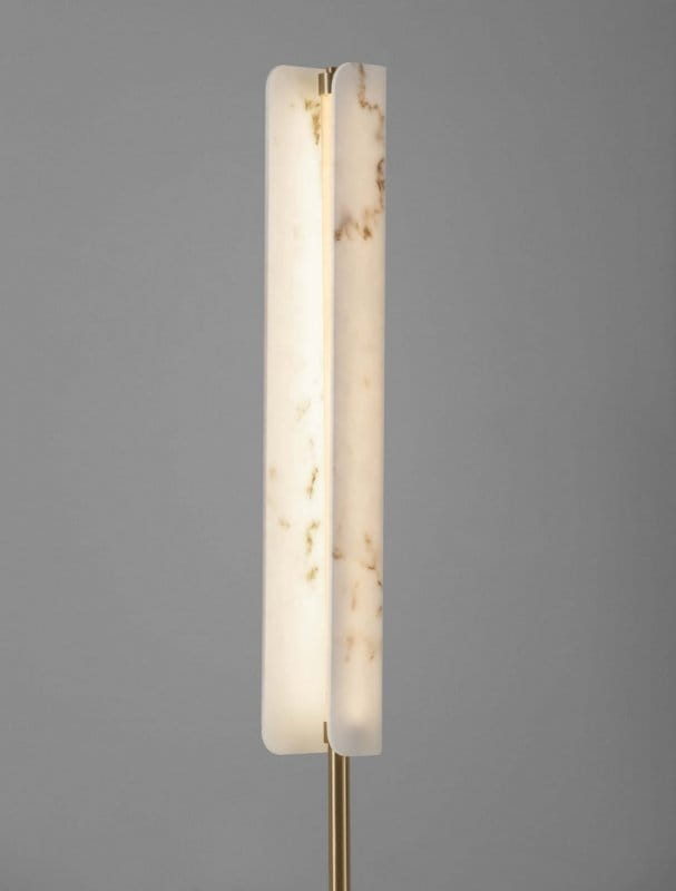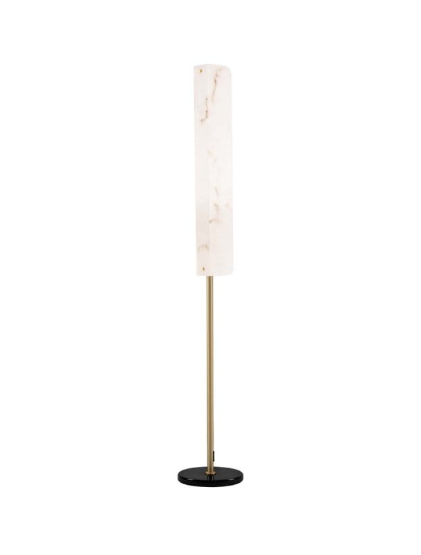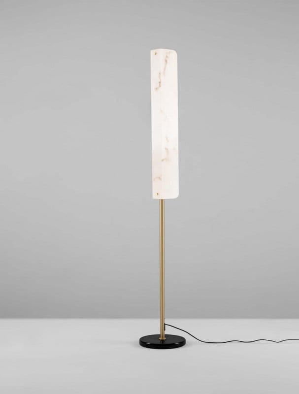 Elegancka lampa podłogowa Luces Exclusivas MAIRANA o nowoczesnym designie, łącząca luksusowe materiały i minimalistyczną formę. Posiada smukły, pionowy klosz wykonany z wysokiej jakości materiału imitującego alabaster, który wsparty jest na metalowym trzonku, osadzonym na stabilnej, okrągłej podstawie w kolorze czarnym. Dzięki harmonijnemu połączeniu marmuru, złota i czerni lampa doskonale wpisuje się w styl glamour, nowoczesny oraz art deco. Idealna jako dekoracyjne oświetlenie w salonie, sypialni lub gabinecie, dodając wnętrzu wyrafinowanego charakteru