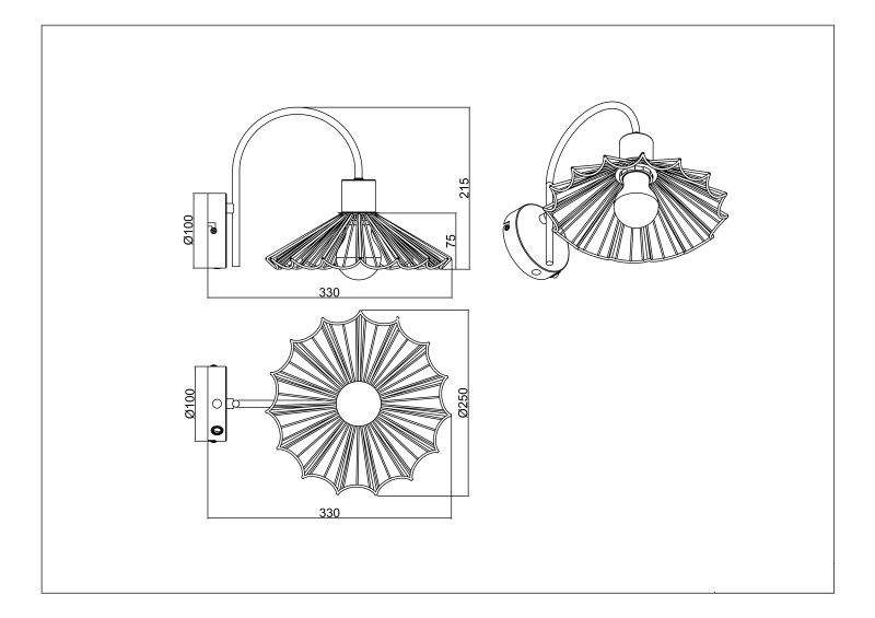 | Wykonanie: | Kinkiet wyposażony we włącznik ON/OFF zamontowany w obudowie |