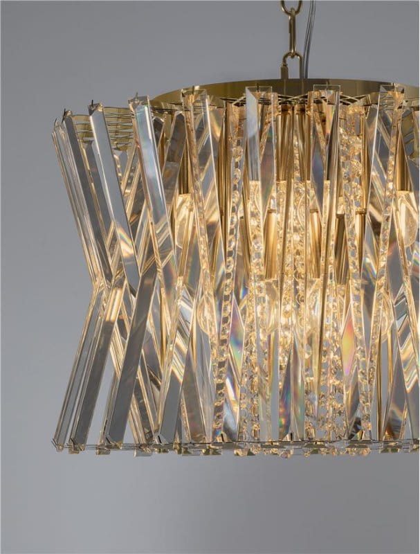 Lampa wisząca MELUNTO kryształ | satynowy mosiądz śr. 43cm. 8xE14