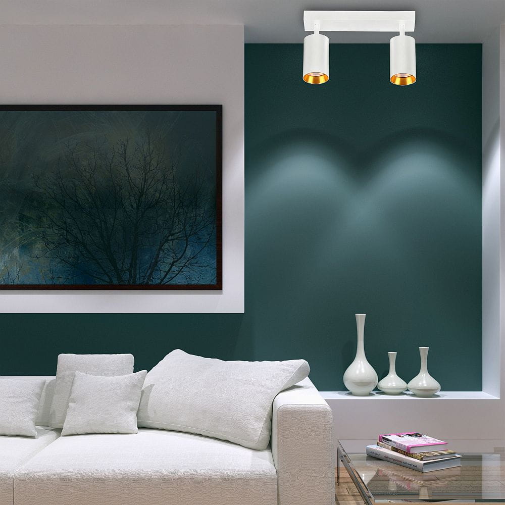 Spot z wymiennym ringiem Maribel biały | złoty 2xGU10