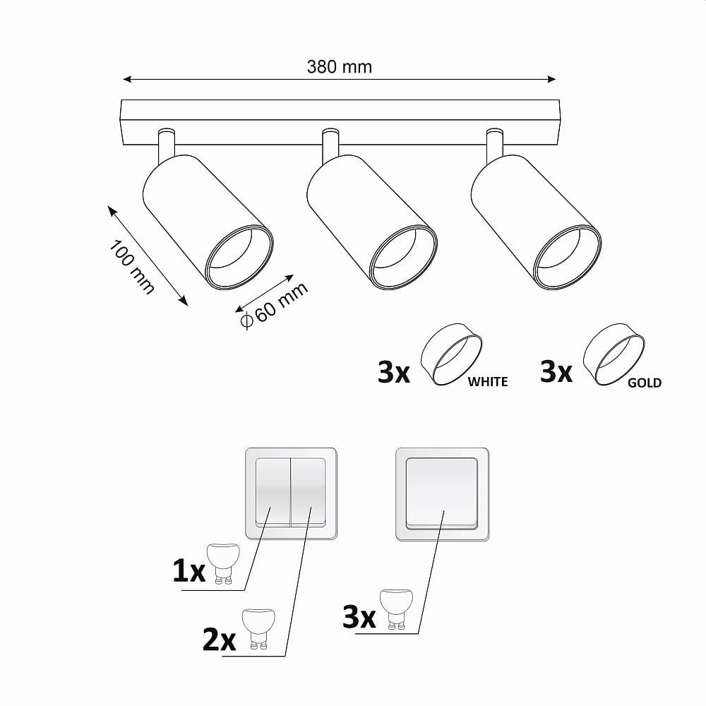 Maribel biały | złoty 3xGU10 Spot z wymiennym ringiem