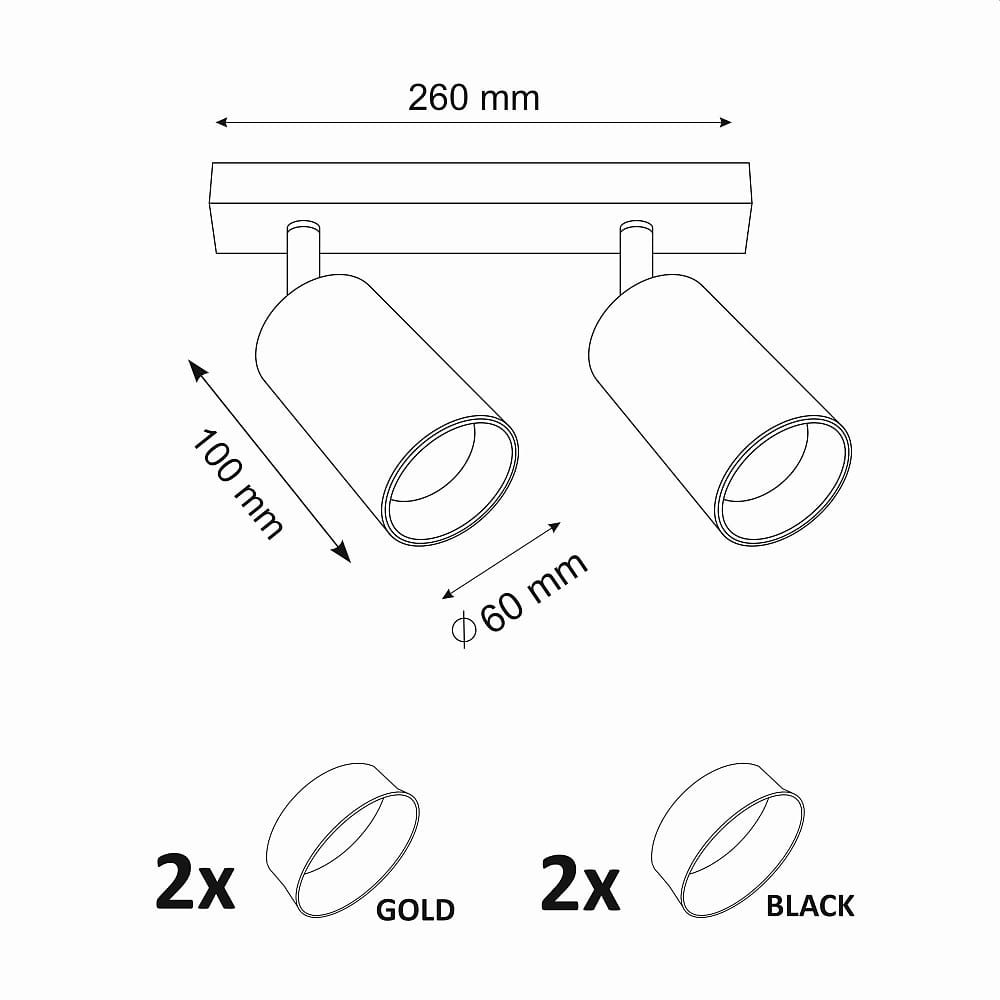 Maribel czarny | złoty 2xGU10 Spot z wymiennym ringiem