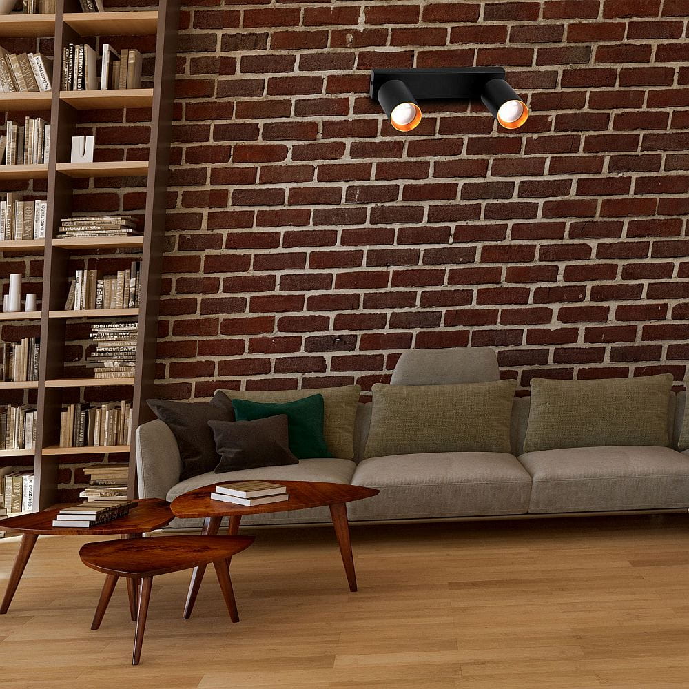 Spot z wymiennym ringiem Maribel czarny | złoty 2xGU10