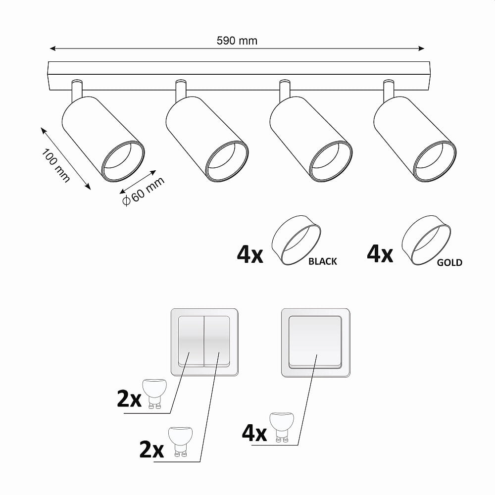 | Rodzaj gwintu: | 4 x GU10 |