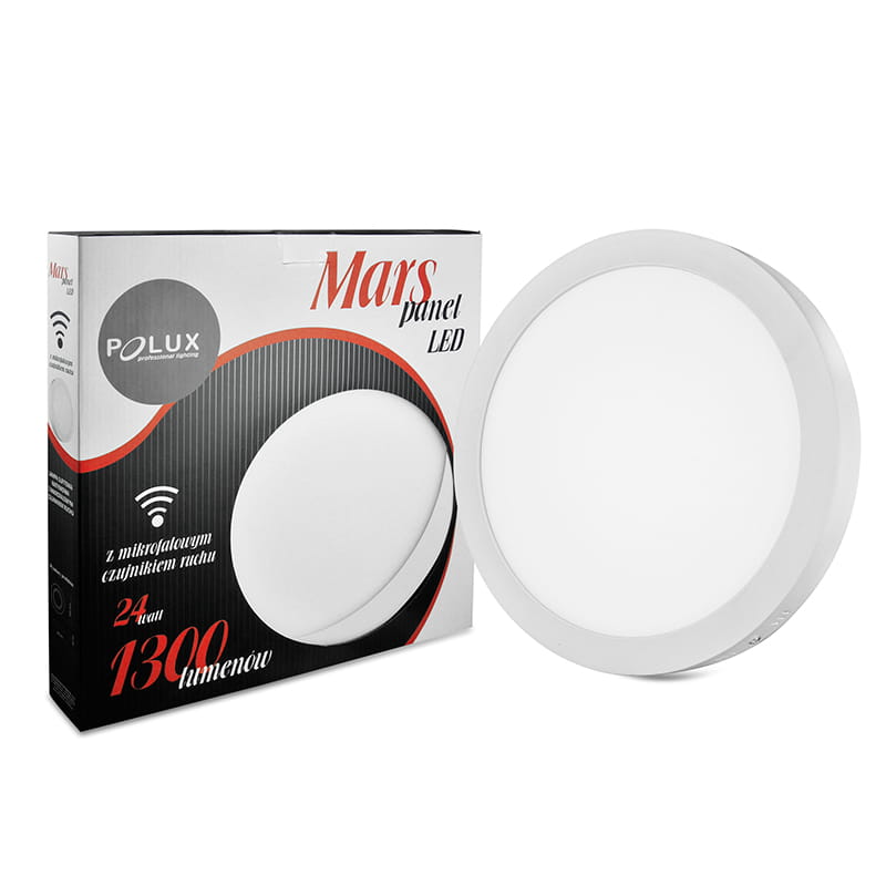 Polux Plafon Mars LED 24W Oprawa sufitowa natynkowa okrągła z czujnikiem mikrofalowym ruchu 30cm 3000K 303578
