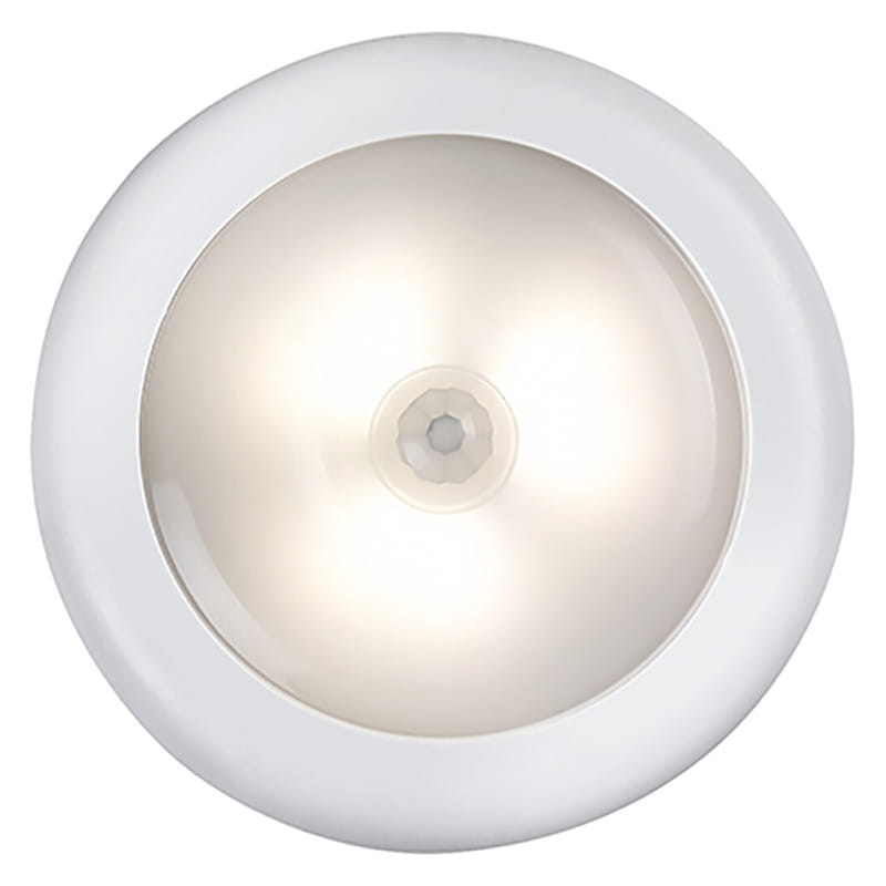 Dzięki funkcjonalnemu stylowi i białej barwie lampka nocna Milo będzie ozdobnym i praktycznym dodatkiem do prawie każdego pomieszczenia w Twoim domu. Możesz umieścić ją w pokoju dziecięcym, w przedpokoju lub dowolnym innym miejscu w swoim mieszkaniu, do którego chcesz dodać dyskretne oświetlenie. Tę lampkę nocną można łatwo zamontować za pomocą dwustronnej taśmy dołączonej do opakowania. Wbudowane, energooszczędne i dekoracyjne źródło światła LED emituje naturalne, białe światło. Jego moc wynosi 0,5 W, natężenie – 30 lumenów, temperatura barwowa – 4000 K, a żywotność – 30 000. Ta niewielka lampa z tworzywa sztucznego wyposażona jest w czujnik ruchu, który wykrywa go pod kątem 120° na odległość do 2 metrów. Lampa nocna Milo jest zasilana 3 bateriami AAA. Baterie nie znajdują się w zestawie. Średnica tej okrągłej lampy dekoracyjnej wynosi 72 mm.