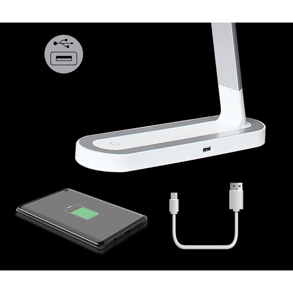 Misha Srebrny | Biały LED 7W 4000K Ładowarka USB, Ściemnialna Lampka biurkowa Rabalux 3349