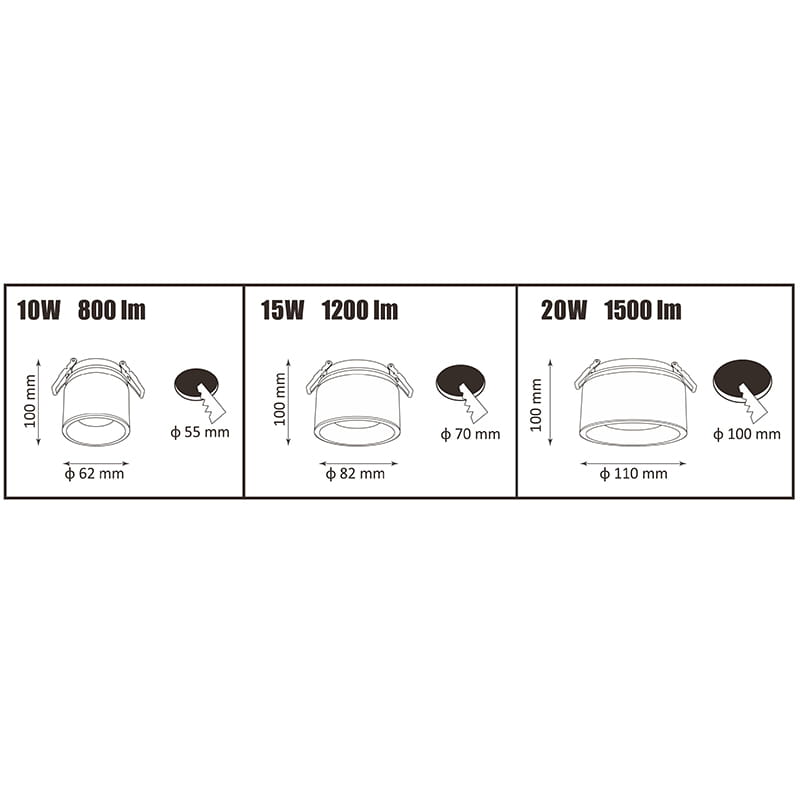 Oczko przegubowe podtynkowe Haron 15W 1200lm czarne