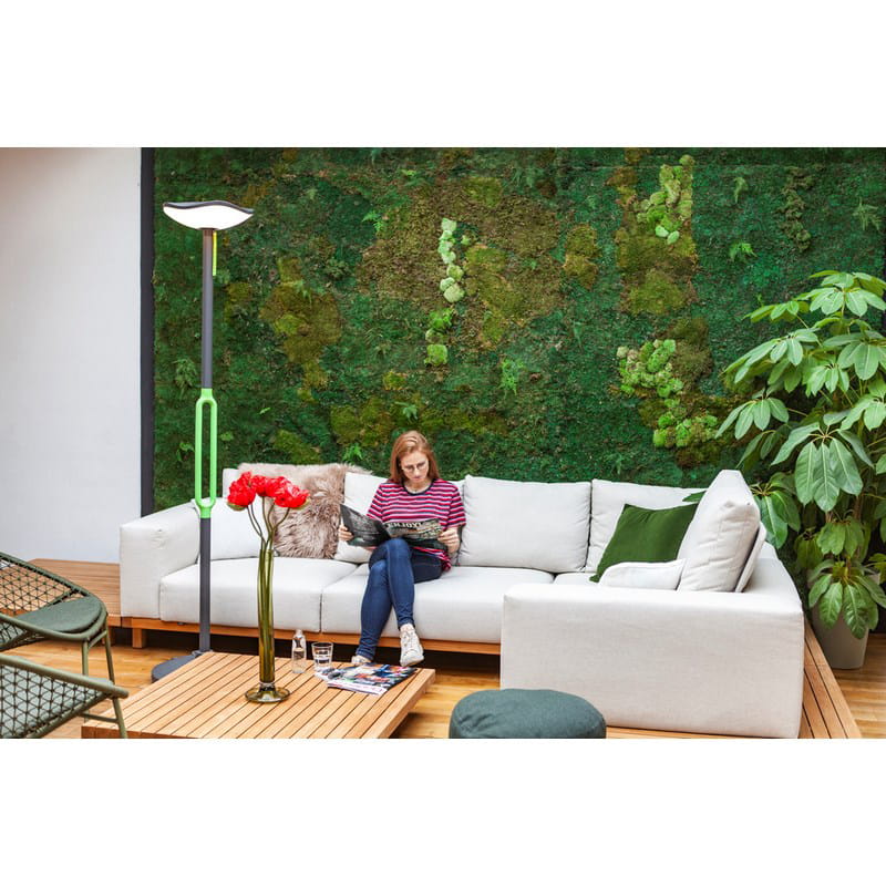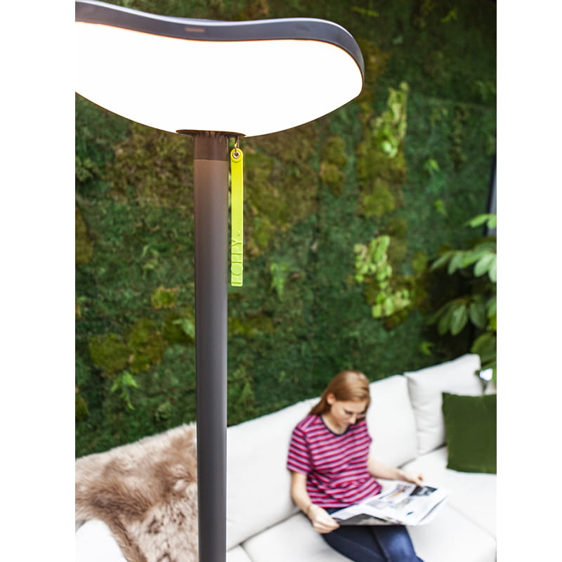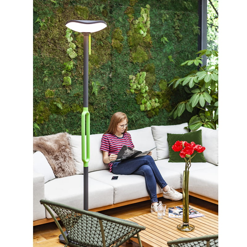 Lampa stojąca zewnętrzna POPPY belgijskiego producenta oświetlenia Lutec, to lampa, która pozyskuje energię z promieni słonecznych za pomocą paneli umieszczonych na szczycie i gromadzi ja w baterii solarnej, by można ją było wykorzystać po zmroku. Dodatkowo lampa stojąca POPPY została wyposażona w głośnik Bluetooth, który umożliwia bezprzewodowe przesyłanie dźwięku ze smartfona lub tabletu, co pozwoli na relaks przy audiobooku lub zabawę w tonach ulubionej muzyki.