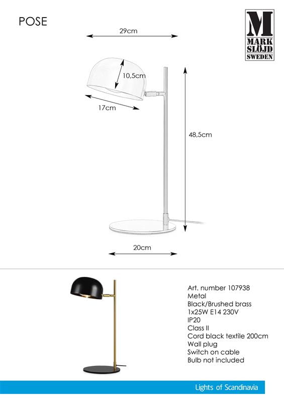 POSE czarny | mosiądz E14 Lampka stołowa Markslojd 107938