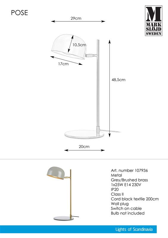 POSE szary | mosiądz E14 Lampka stołowa Markslojd 107936
