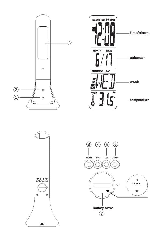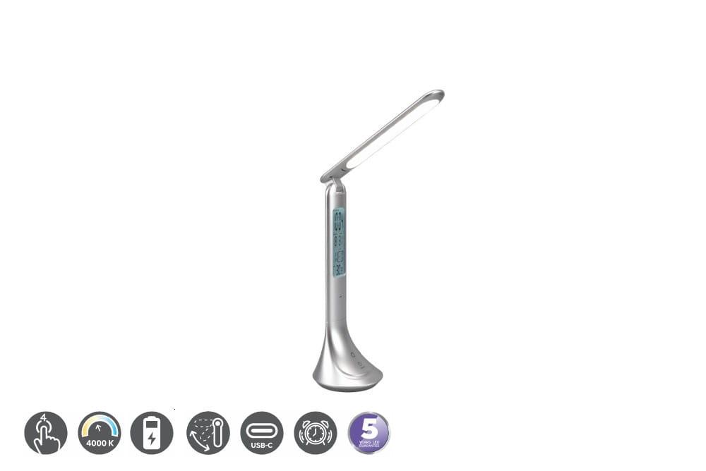 Patty tytanowy LED 3 step dim. 4W 4000K budzik, kalendarz, temperatura Lampka biurkowa