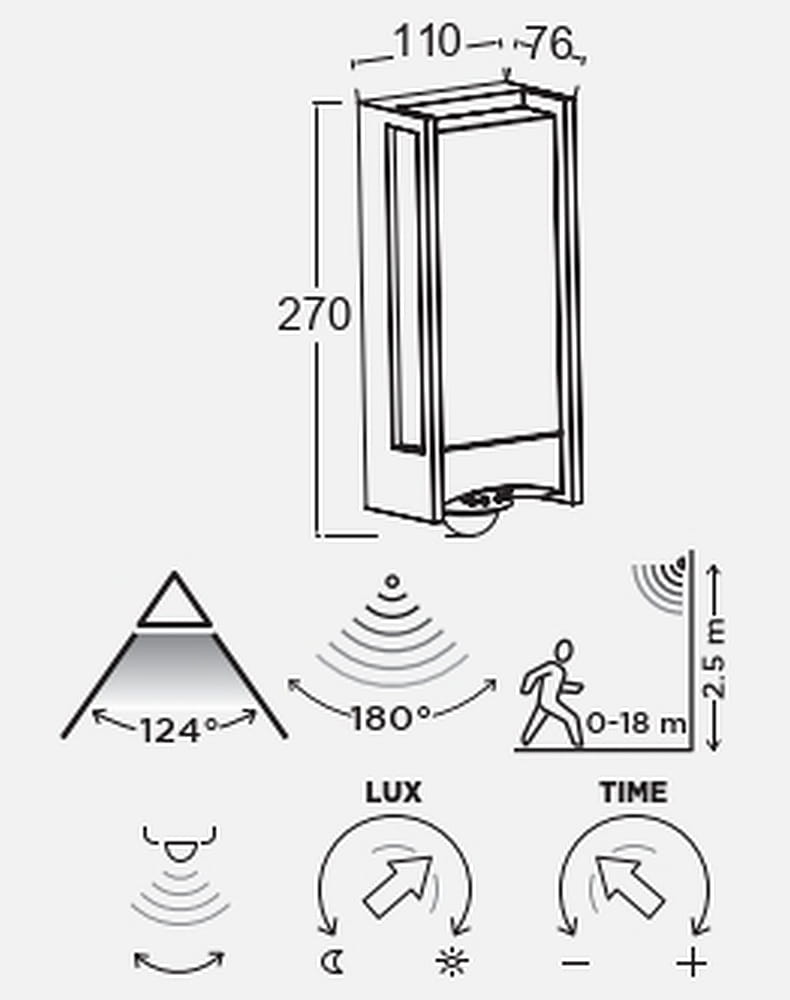 | Dane czujnika ruchu: | Zasięg 18 m | Kąt 180° |