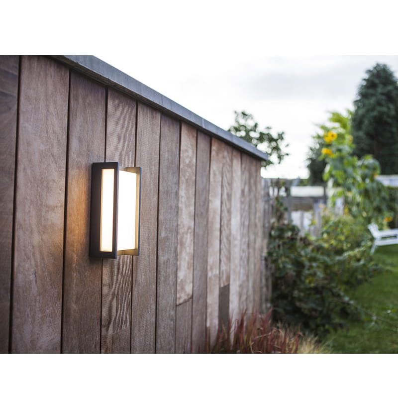 Kinkiet zewnętrzny QUBO w kolorze ciemnoszarego antracytu belgijskiego producenta oświetlenia Lutec z modułem oświetleniowym WIZ connected, to niewątpliwie lampa, która tworzy oszałamiającą atmosferę przy jednoczesnej pełnowartościowej wymowie architektonicznej. QUBO stanowi idealny element jako podstawowe oświetlenie w ogrodzie lub tarasie. Również nietuzinkowo będzie prezentować się na elewacji budynku. Kinkiet zewnętrzny FARELL belgijskiej firmy Lutec o mocy 16W posiada stopień szczelności IP54 i świeci wiązką światła LED o barwie w zakresie od 2700 do 6500K oraz RGB.