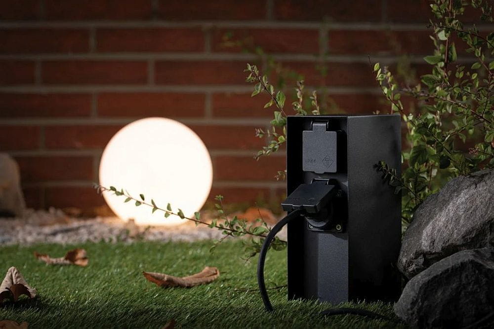 Kolumna z czterema gniazdami elektrycznymi Rio służy jako rozdzielacz prądu na zewnątrz. Dzięki ochronie przed wodą rozbryzgową IP44 oraz ochronnym stykom gniazdowym doskonale nadaje się do zasilania oświetlenia ogrodowego.