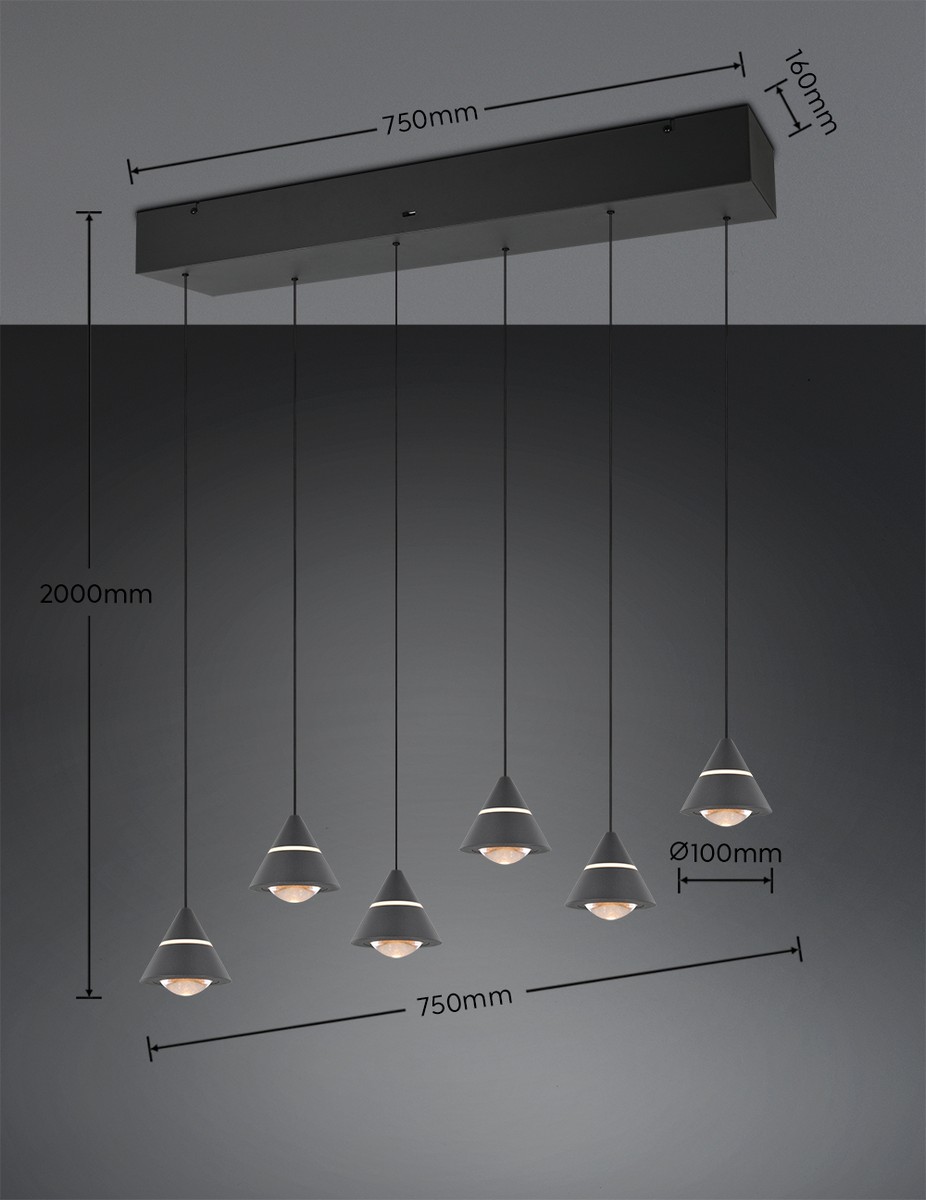 ROMEO - Nowoczesna lampa wisząca 6xLED zintegrowany 2300+3000+4000 K - kolor czarny