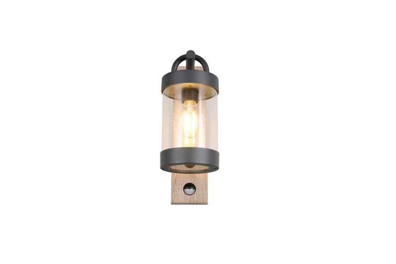 SAMBESI imitacja drewna | popiel PIR E27 IP44 Kinkiet zewnętrzny z czujnikiem ruchu i zmierzchu