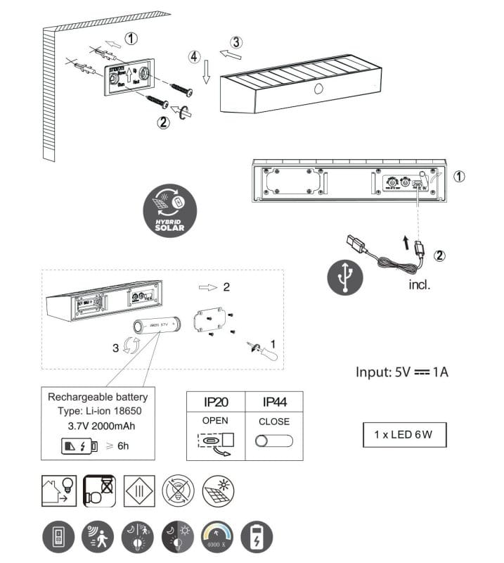 | Wykonanie: | Ładowanie akumulatora: Energia słoneczna oraz przez złącze USB-C |