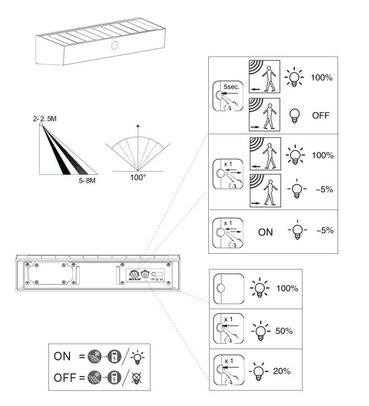 | Dane czujnika ruchu: | Kąt wykrywania: 100° | Zasięg: do 8 m. |
