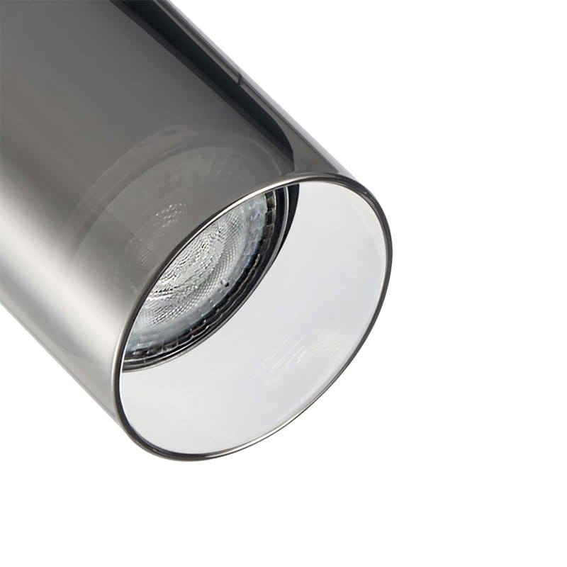 SMOKY to nowoczesny zestaw szynowy z trzema reflektorami z wymiennym źródłem światła, wykonany z przezroczystego szkła w kolorze czarnym.